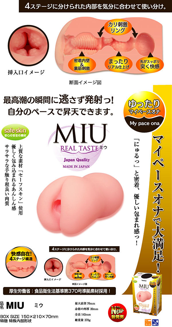 ミウ(MIU)は4つのステージ(内部構造)を「マイペース感覚で使用できる」が宣伝文句の肌触りの良いオナホールです。