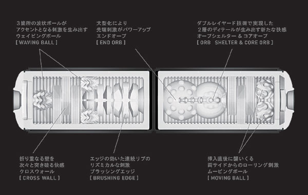 非貫通型のオナカップ。内部の洗浄が簡単で乾かしやすく衛生的。50回使用可能。TENGAフリップホールの前作に細かい改良を加えて新登場。従来のフリップホールに比べ、よりハードな刺激を得られる。よりハッキリ・クッキリとしたキレのある刺激を生み出すハードディテール。硬度を増した内部弾性素材。圧倒的な締め付け感。⇒内部構造イメージ